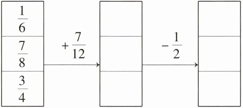 $ \frac { 5 } { 6 } + \frac { 1 } { 4 } - \frac { 11 } { 12 } $$ $$ \frac { 4 } { 5 } - \frac { 8 } { 15 } + \frac { 3 } { 10 } $$ $$ \frac { 9 } { 10 } - ( \frac { 1 } { 5 } + \frac { 3 } { 10 } ) $