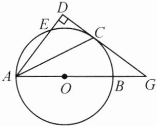 如图,AB为⊙O的直径,E为⊙O上一点,点C为$\overset{\frown}{EB}$的中点,过点C作CD⊥AE,交AE的延长线于点D,延长DC交AB的延长线于点G。