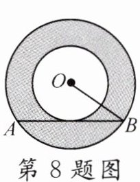 8. 【教材P101习题T5变式】如图,两圆的圆心相同,大圆的弦AB与小圆相切,AB= 8,则图中阴影部分的面积是