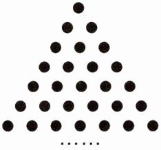 【背景】相传古希腊毕达哥拉斯学派的数学家经常在沙滩上研究数学问题.他们在沙滩上画点或用小石子来表示数,比如,他们研究过$1,3,6,10…$,由于这些数可以用图中所示的三角点阵表示,他们就将每个三角点阵中所有的点数和称为三角数.