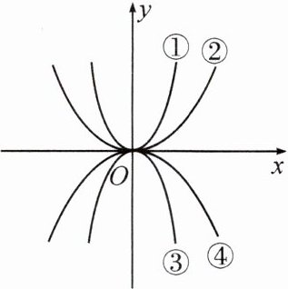 7. 【数形结合思想】如图,四条抛物线所对应的函数解析式分别为:①$y= ax^{2}$;②$y= bx^{2}$;③$y= cx^{2}$;④$y= dx^{2}$。比较$a,b,c,d$的大小,用“>”连接为