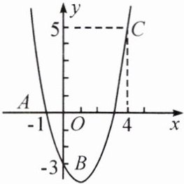 解:A(-1,0),B(0,-3),C(4,5)。把A,B,C三点代入y = ax²+bx+c中,得$\begin{cases}a - b + c = 0, \\16a + 4b + c = 5, \\c = -3. \end{cases}$解得$\begin{cases}a = 1, \\b = -2, \\c = -3. \end{cases}$
