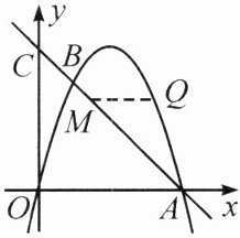∴当$m = \frac{5}{2}$时,$QM$最大,最大值是$\frac{9}{4}$,此时点$Q$的坐标是$(\frac{5}{2},\frac{15}{4})$。