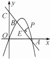 ∴当$m = \frac{5}{2}$时,$PE$有最大值,最大值是$\frac{9\sqrt{2}}{8}$。