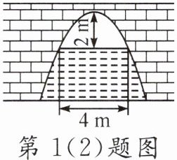 (2)【已知水面到拱顶的距离,求水面的宽度】如图是一座抛物线形拱桥,当拱顶到水面的距离为2m时,水面宽4m。若水面下降2m,则水面宽度为