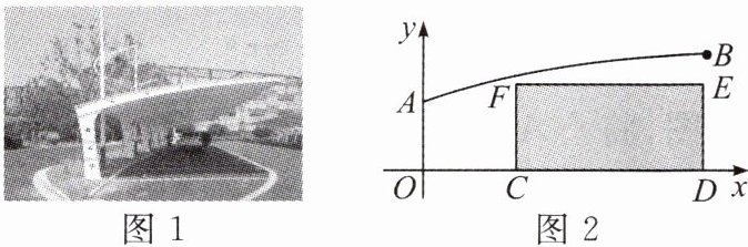 12. (2024·甘肃)如图$1$为一汽车停车棚,其棚顶的横截面可以看作是抛物线的一部分,如图$2是棚顶的竖直高度y$(单位:$m$)与距离停车棚支柱$AO的水平距离x$(单位:$m$)近似满足函数关系$y = -0.02x^{2}+0.3x + 1.6$的图象,点$B(6,2.68)$在图象上。若一辆箱式货车需在停车棚下避雨,货车截面看作长$CD = 4m$,高$DE = 1.8m$的矩形,则可判定货车____完全停到车棚内(填“能”或“不能”)。