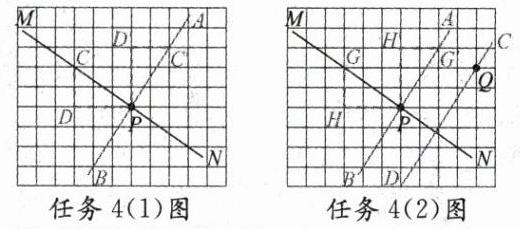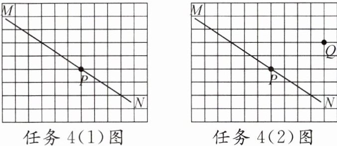 任务4:(1)已知直线MN的位置如图,格点P是直线MN上一点,请用无刻度的直尺过点P作MN的垂线.