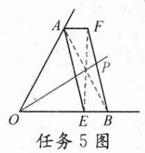 任务5:如图,已知∠AOB,OA= OB.点E在OB边上,其中四边形AEBF是平行四边形,请用无刻度的直尺在图中画出∠AOB的平分线.
