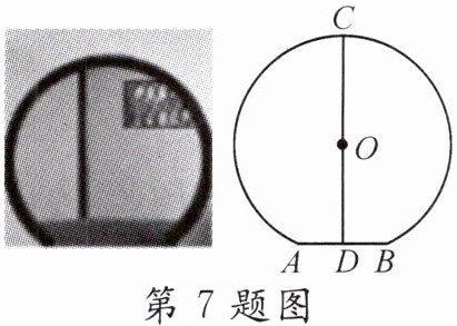 7.【新情境·圆形拱门】(2024·通辽)如图,圆形拱门最下端AB在地面上,D为AB的中点,C为拱门最高点,线段CD经过拱门所在圆的圆心,若$AB= 1m$,$CD= 2.5m$,则拱门所在圆的半径为 (