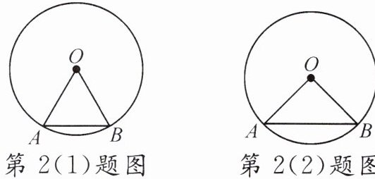 2. (1)如图,$\odot O$的直径是 4,弦长$AB= 2$,则圆心角$∠AOB$的度数是