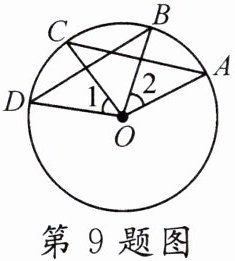 9. 如图,已知 A,B,C,D 是$\odot O$上的点,$∠1= ∠2$,则下列结论中正确的有 (