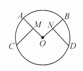 12.【教材 P123 复习题 T2 变式】如图,在$\odot O$中,$CM⊥OA$于点 M,$DN⊥OB$于点 N,且$AM= BN$. 求证:$\widehat {AC}= \widehat {BD}.$