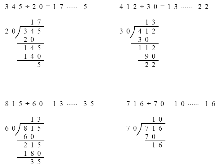 $345÷20$ $412÷30$ $815÷60$