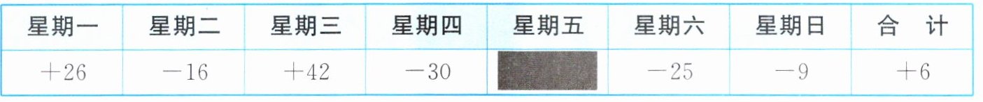 根据表格,一星期合计进出库为$+6$吨,即总进库量减去总出库量为$+6$吨。