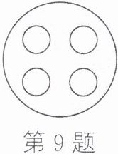 9. 如图,在半径为$R$的圆形钢板上,挖去半径为$r$的四个小圆.若$R= 8.9cm,r= 0.55cm$,请你运用所学知识,用最简单的方法计算剩余部分的面积(结果保留$π$).