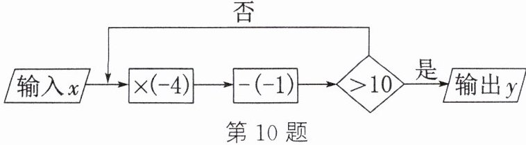 10. 按如图所示的程序计算,如果开始输入$ x 的值为 -\frac{1}{2} $,那么最后输出$ y $的值为____。