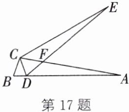 17.(15分)(湘西中考)如图,在△ABC中,点D在边AB上,CB= CD,将边CA绕点C旋转到CE的位置,使得∠ECA= ∠DCB,连接DE与AC交于点F,且∠B= 70°,∠A= 10°.