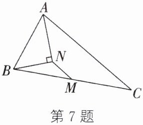 7. 如图,在$\triangle ABC$中,$M是BC$的中点,$AN平分\angle BAC$,$BN\perp AN于点N$.若$AB = 7$,$MN = 3$,则$AC$的长为( )
