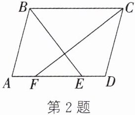 2.(安顺中考)如图,在$□ ABCD$中,$\angle ABC的平分线交AD于点E$,$\angle BCD的平分线交AD于点F$.若$AB = 3$,$AD = 4$,则$EF$的长是( )