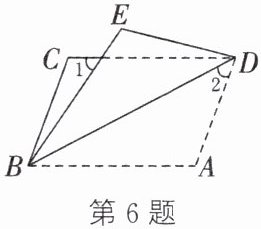 6.(大庆中考)如图,将$□ ABCD沿对角线BD$折叠,使点$A落在点E$处.若$\angle 1 = 56^{\circ}$,$\angle 2 = 42^{\circ}$,则$\angle A$的度数为( )
