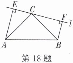18. (6分)如图,在$\triangle ABC$中,$AC = BC$,直线$l经过顶点C$,过$A$,$B两点分别作直线l的垂线AE$,$BF$,垂足分别为$E$,$F$,且$AE = CF$. 求证:$\angle ACB = 90^{\circ}$.
