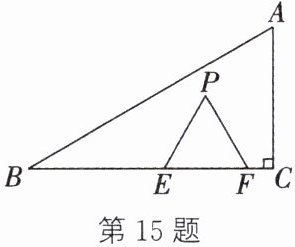 15. (陕西中考)如图,在$\text{Rt} \triangle ABC$中,$\angle C = 90^{\circ}$,$\angle B = 30^{\circ}$,$AB = 8$. 若$E$,$F是边BC$上的两个动点,以$EF为边的等边三角形EFP的顶点P在\triangle ABC$的内部或边上,则等边三角形$EFP$的周长的最大值为______.