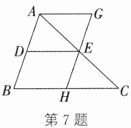 7. 如图,在 $\triangle ABC$ 中,$D$,$E$ 分别是边 $AB$,$AC$ 的中点,连接 $DE$,按下面要求作图:过点 $E$ 作 $GH // AB$,过点 $A$ 作 $AG // BC$,交 $GH$ 于点 $G$. 若四边形 $ABHG$ 的周长与 $\triangle ABC$ 的周长相等,$\triangle ABC$ 还需具备的条件是( )