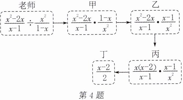 4. 老师设计了接力游戏,让甲、乙、丙、丁四名同学完成化简.过程如图所示: