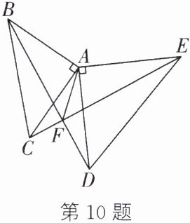10. 如图,$\triangle ABC$ 和 $\triangle ADE$ 都是等腰直角三角形,$\angle BAC = \angle DAE = 90^{\circ}$,$BD$,$CE$ 交于点 $F$,连接 $AF$. 有下列结论:① $BD = CE$;② $BD \perp CE$;③ $AF$ 平分 $\angle CAD$;④ $\angle AFE = 45^{\circ}$. 其中,正确的有( )