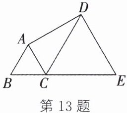 13. 如图,$\triangle ABC$ 与 $\triangle DCE$ 都是等边三角形,$B$,$C$,$E$ 三点在同一条直线上. 若 $AB = 3$,$\angle BAD = 150^{\circ}$,则 $DE$ 的长为______.