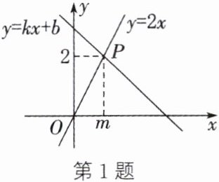 1. 数形结合思想 如图,直线$y= 2x与y= kx+b相交于点P(m,2)$,则关于x的方程$kx+b= 2$的解是 ( )