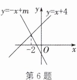 6. 如图,直线$y= -x+m与y= x+4$交点的横坐标为-2,则关于x的不等式组$-x+m>x+4>0$的解集为____.