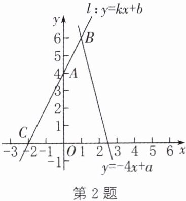 2. 如图,点$A(0,4),C(-2,0)在直线l:y= kx+b$上,直线l和函数$y= -4x+a$的图象交于点B.