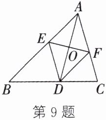 9. 如图,AD是△ABC的角平分线,DE//AC交AB于点E,DF//AB交AC于点F,连接EF,交AD于点O,则∠AOF的度数为______.
