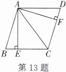 13. 如图,在□ABCD中,AE⊥BC,AF⊥CD,垂足分别为E,F,且BE= DF.