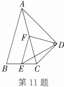 11. 如图,在$△ABC$中,$AB= AC= 4$,$∠CAB= 30^{\circ}$,以 AC 为斜边作$Rt△ADC$,使$∠ADC= 90^{\circ}$,$∠CAD= ∠CAB$,E,F 分别是 BC,AC 的中点,连接 EF,DE,DF,则 DE 的长为______.
