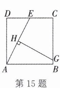 15.(无锡中考)如图,正方形 ABCD 的边长为 8,E 是 CD 的中点,HG 垂直平分 AE,且分别交 AE,BC 于点 H,G,则$BG= $______.