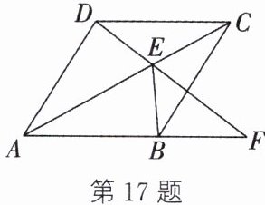 17.(6 分)(青海中考)如图,四边形 ABCD 为菱形,E 为对角线 AC 上的一个动点(不与点 A,C 重合),连接 DE 并延长,交射线 AB 于点 F,连接 BE. 求证: