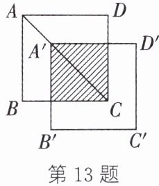 13.(益阳中考)如图,将边长为 3 的正方形 ABCD 沿其对角线 AC 平移到正方形$A'B'C'D'$的位置,使点 A 的对应点$A'满足AA'= \frac{1}{3}AC$,则所得正方形与原正方形重叠部分的面积是______.
