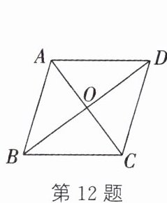 12. 如图,在菱形 ABCD 中,对角线 AC,BD 相交于点 O,$AC= 6$,$DB= 8$,则点 A 到 BC 的距离为______.