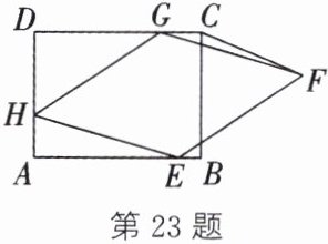 23.(8 分)如图,在矩形 ABCD 中,$AD= 6$,$CD= 8$,菱形 EFGH 的三个顶点 E,G,H 分别在矩形 ABCD 的边 AB,CD,DA 上,$AH= 2$,连接 CF.