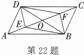 22.(6 分)(十堰中考)如图,在$□ ABCD$中,AC,BD 相交于点 O,E,F 分别是 OA,OC 的中点,连接 DE,DF,BE,BF.