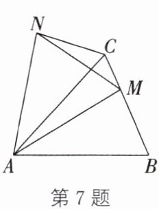 7.(天津中考)如图,在△ABC中,AB= AC.若M是边BC上任意一点,将△ABM绕点A按逆时针方向旋转得到△ACN,点M的对应点为N,连接MN,则下列结论一定正确的是( )