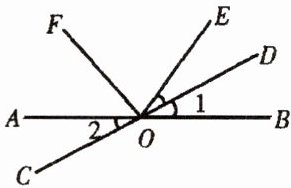 11. 如图所示,直线$AB$,$CD相交于点O$,作$∠DOE= ∠1$,$OF平分∠AOE$,若$∠2= 28^{\circ }$,求$∠EOF$的度数.