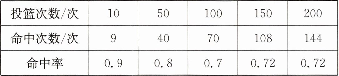 5. 某校篮球队进行篮球投篮训练,下表是某队员投篮的统计结果: