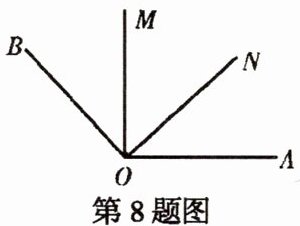 8. 如图所示,$∠MON= 48^{\circ}$,$OA⊥OM$,$OB⊥ON$,则$∠AOB= $______。