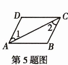 5. 如图所示,已知$∠1= 2$,$∠BAD= 44^{\circ}$,则$∠B= $______。