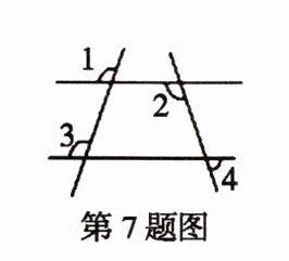 7. 如图所示,已知$∠1= 125^{\circ}$,$∠2= 105^{\circ}$,$∠3= 125^{\circ}$,则$∠4= $______。