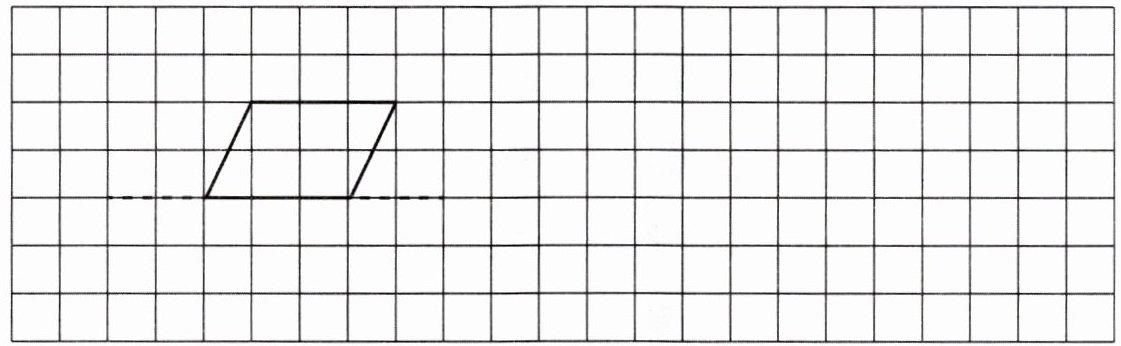 【答案】:在图中补全对称图形(左侧补全一个和右侧一样的平行四边形),然后将补全后的图形向右平移11格,再向上平移2格后画出的图形(在相应位置画出和原补全后图形一样的平行四边形)。(由于无法直接画图,请根据描述在方格纸上完成)