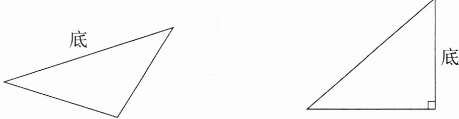 第一个图:从与底边相对的顶点向底边作垂线,垂线段的长度就是高,在垂足处标上垂直符号。